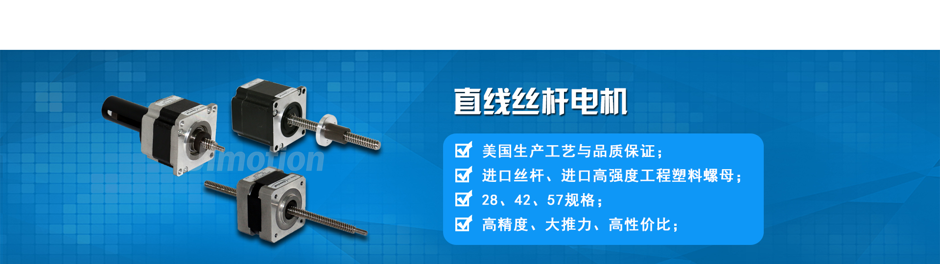 行業(yè)領(lǐng)先的工業(yè)自動(dòng)化運(yùn)動(dòng)控制產(chǎn)品的源頭廠家。專業(yè)研發(fā)生產(chǎn)銷售: 一體式步進(jìn)電機(jī) 、一體化步進(jìn)電機(jī)驅(qū)動(dòng)器、高精度絲桿步進(jìn)電機(jī)、直流伺服一體機(jī)等系列產(chǎn)品。我們采用品質(zhì)、服務(wù)、信譽(yù)三者融合的經(jīng)營(yíng)理念,從設(shè)計(jì)、檢驗(yàn)、包裝運(yùn)輸?shù)绞酆蠓?wù),立志做有技術(shù),有價(jià)值,有品質(zhì)的高端產(chǎn)品,希望成為您值得信任的合作伙伴,感謝多年來(lái)新老客戶對(duì)我們的支持和信賴,我們期待與您共同發(fā)展! ...